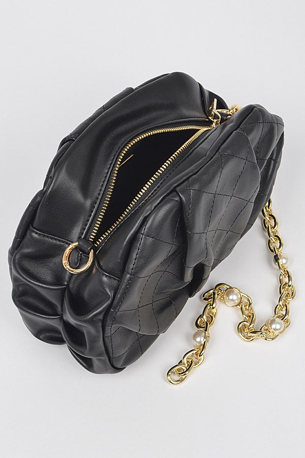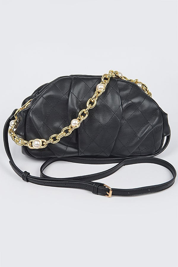 Pearl-Encrusted Chain: Features a stunning gold-tone chunky chain handle interwoven with oversized faux pearls, serving as both a functional handle and high-fashion jewelry for your bag.