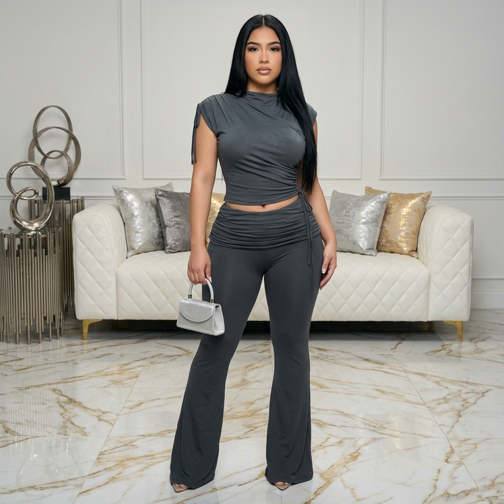 Sleek and sophisticated, this charcoal gray matching set is designed to make you look effortlessly put-together.