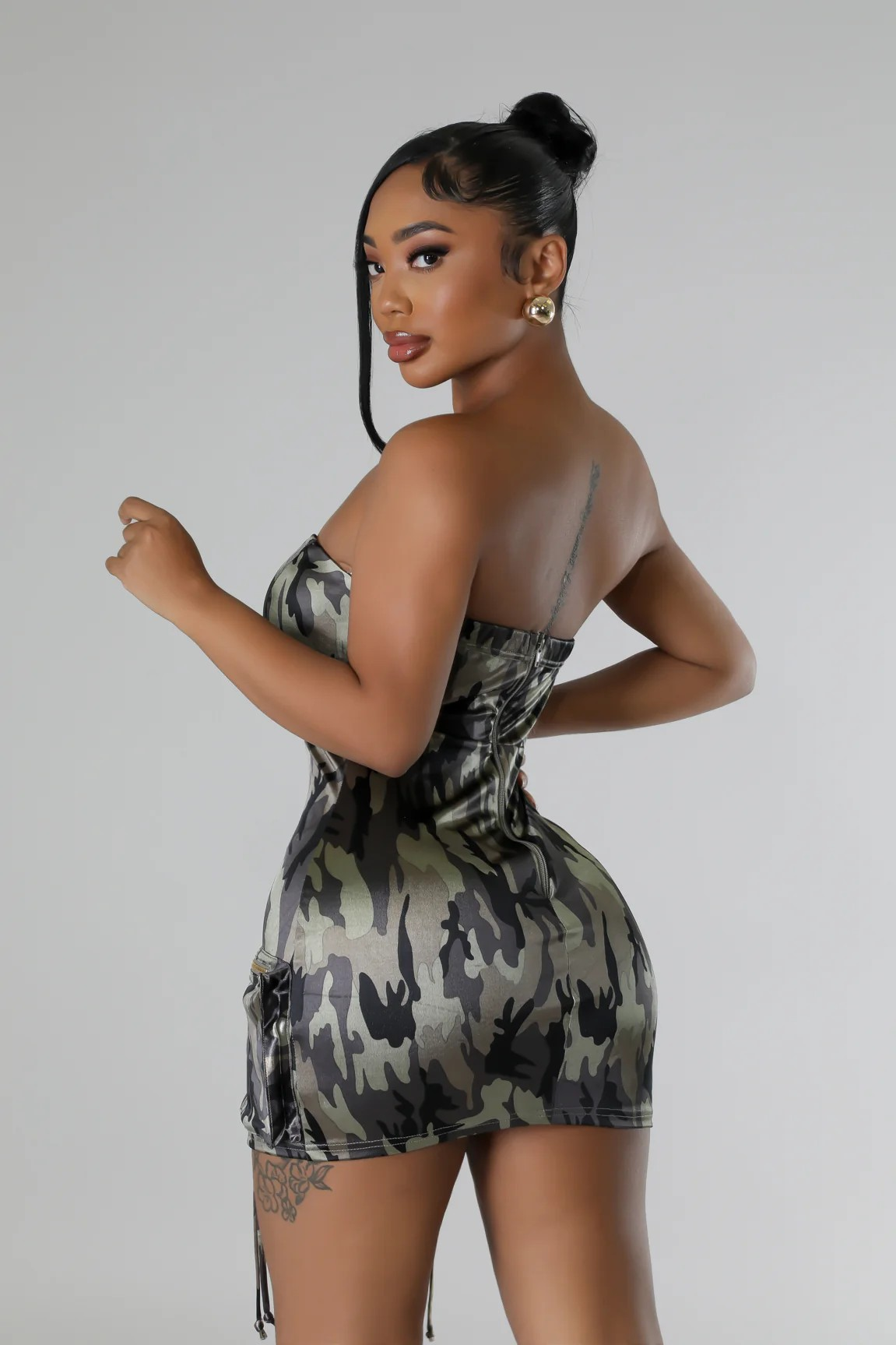 Slip into this alluring multi-color dark green and black cameo tube fitted mini dress that hugs your curves in all the right places. The front straps provide secure support while the convenient front pocket adds practicality to this head-turning piece. Perfect for nights out when you want to command attention and exude confidence. A Kasheer Royalty exclusive that combines style, comfort, and undeniable sex appeal.