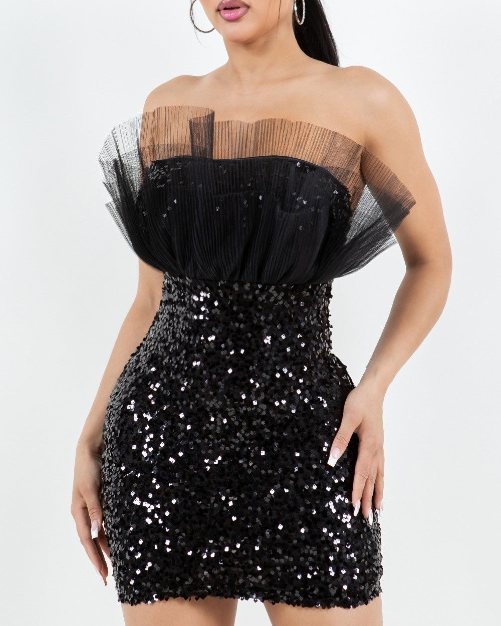 Step into the night with undeniable presence in the Noir Sequin Enchantress Dress — a stunning fusion of elegance, seduction, and luxury. This strapless mini dress is adorned with hand-placed black sequins that shimmer with every move, creating a breathtaking, liquid-black glow.