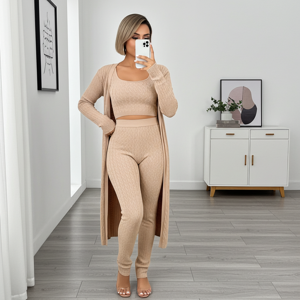 Tan Desiree Lounge Wear (Three Piece Set)-Kasheer Royalty